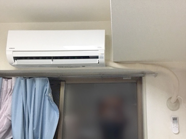 東京都のマンションにて、新品エアコン取り付け工事でお世話になりました。 エアコンの型番は6~9畳タイプの 日立 白くまくん RAS-AJ22G です。
